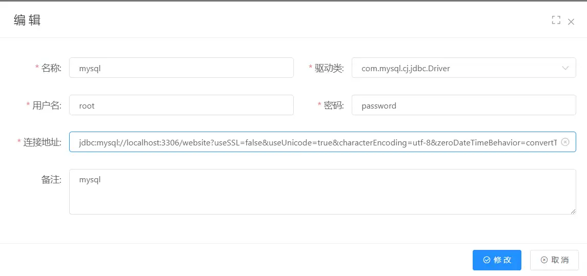 jdbc:mysql://localhost:3306/website?useSSL=false&useUnicode=true&characterEncoding=utf-8&zeroDateTimeBehavior=convertToNull&transformedBitIsBoolean=true&serverTimezone=GMT%2B8