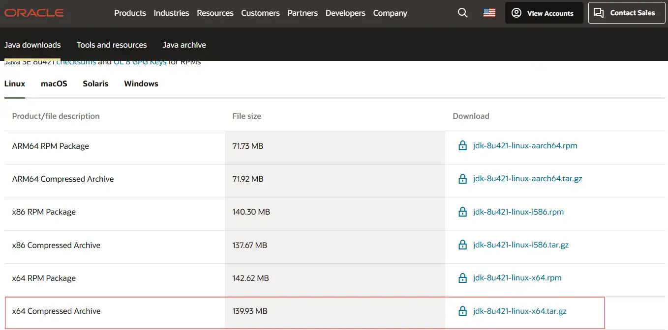 打开jdk官网下载jdk压缩包